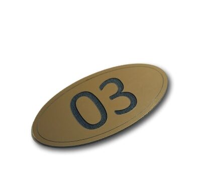 • Materiał –  laminat grawerski -wysokiej jakości materiał kompozytowy do zastosowań zarówno wewnątrz jak i na zewnątrz, odporny na warunki atmosferyczne, w tym opady atmosferyczne podklejony podkładem samoprzylepnym.
