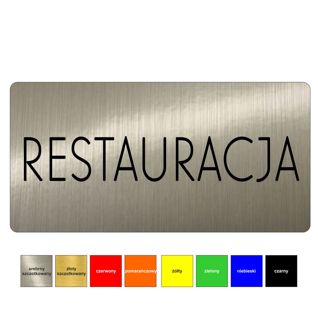 W przypadku braku informacji o wybranym kolorze, wykonujemy tabliczkę w kolorze srebrnym szczotkowanym.